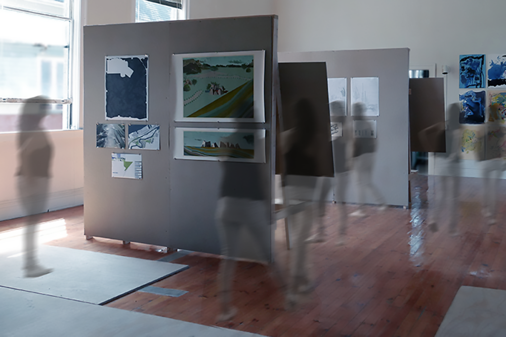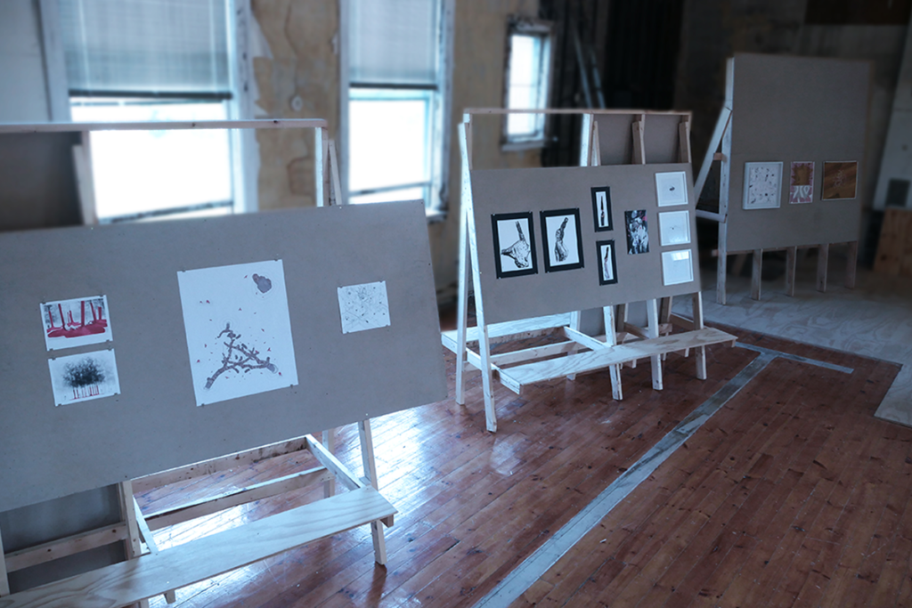 Working with Alicia Escamilla, we curated the exhibition based on the scale of the subject matter in the drawings. Suing the abstract scale as a link between the large scale and the small scale the exhibition presented a circular, continuous framework for viewing. As part of the exhibit we designed and built the wall/bench exhibition design. The custom elements allowed us to present the work in a more informal atmosphere where people could sit and discuss the work right where it was hanging.