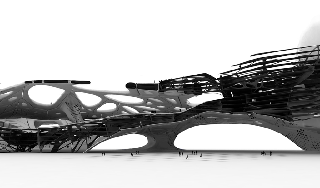 Crackology creates a relationship between infrastructural flows and architectural space. We aim to move beyond traditional understanding of cellular space and continuous flows to make a new ground condition between the two. Using the principles found in cracking, of non-linear flows and the space formed through applied forces, the urban proposal sets up a new sectional relationship to the city. We use infrastructure to blend public and private space, creating overlapping parks, office space and infrastructure.