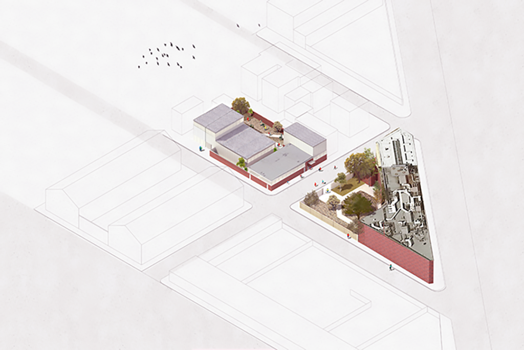 The design extends the brick wall of the studio to the new site with the new building nesting behind it. An important feature of the existing studio – the clerestory ribbon window – presents a reference height for the opening at the new building’s archive area, providing indirect light from the north.