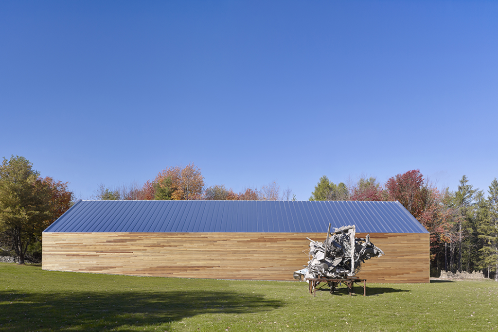 This is the first building of a master plan for 250 acres of land in Upstate New York which will provide a studio, gallery and art storage building, library, artist in residence and visitor center. more buildings will be added with the foundation’s consolidation.