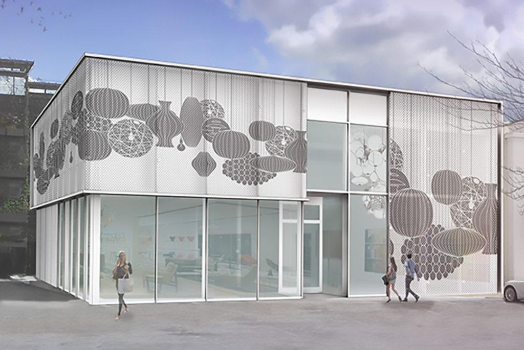 Extruded Frames – The design creates a picture frame around the windows to accentuate the room vignettes. They create both a voyeuristic moment and a classic storefront display.