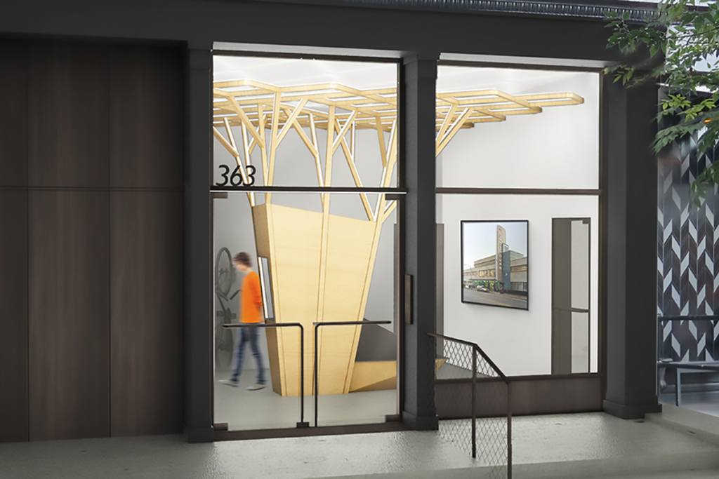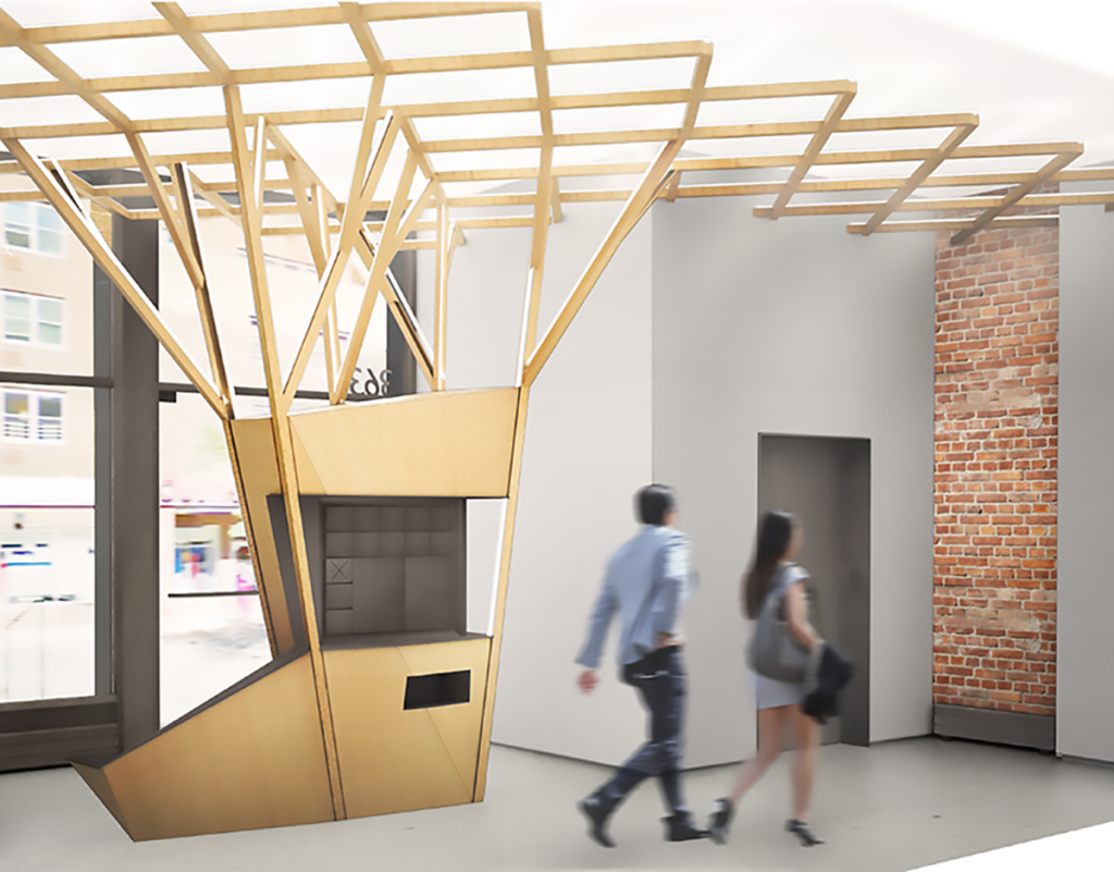 This project provided an opportunity to create a small but visible intervention on the Manhattan street. By creating a single object that was centered and brightly lit in the lobby of the residential building, the design announced itself to passers by while its tight functional construction allowed tenants to use the lobby as both a practical space.