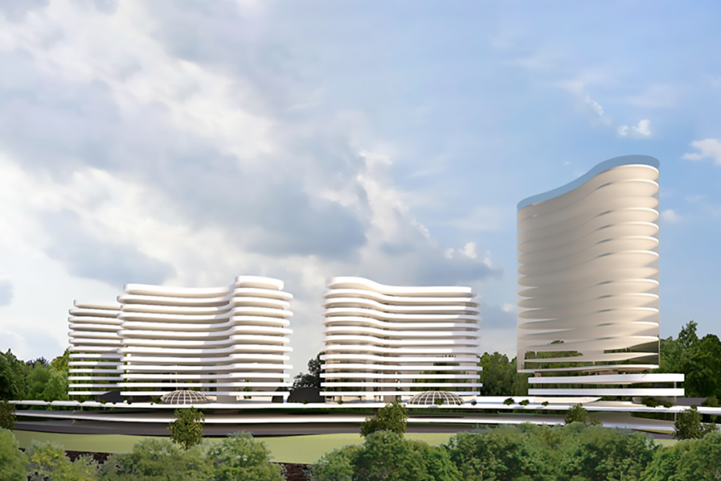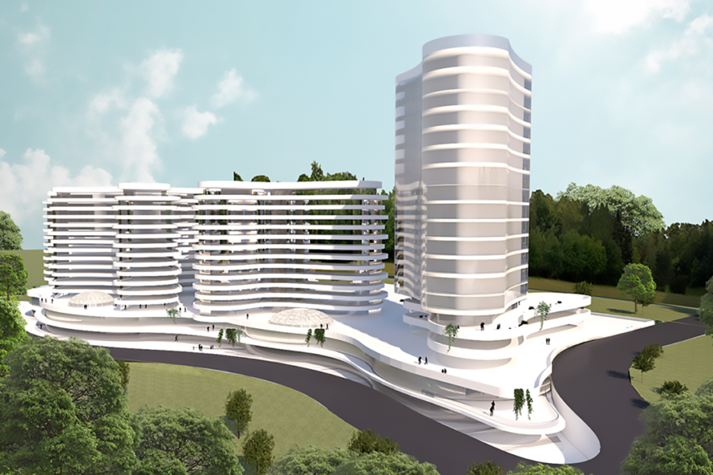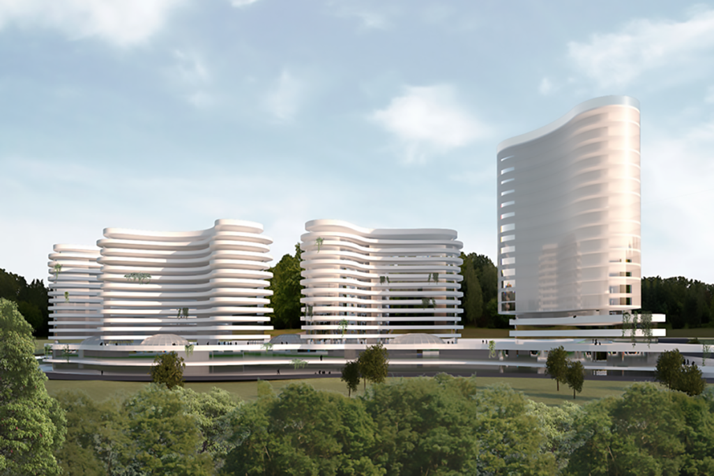 Taking advantage of a beautiful natural slope, with the best direction North – South towards the Colentina river, this residential development project in Bucharest, Romania, aims to capitalize on the maximum allowed height zoning to ensure generous green spaces with a welcoming landscape design.