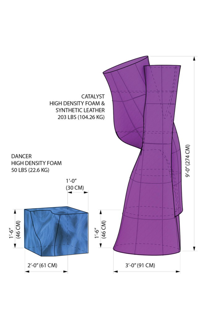 Together they act as a semi-choreographed dance through the square. But our goal is that this works at the scale of the people using the square as well. We envision the entire installation (catalysts and dancers) as a larger catalyst for the city, with the people as the dancers.