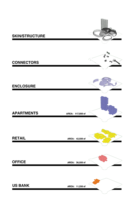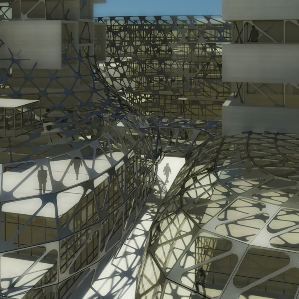 The RETICULAR NETWORK exists within the body to hold organs together. It is a fine meshwork that works both as a stabilizing structure and an organizing feature. In our proposal we use this principle to bring together the various programs of the site. The goal of this proposal is to foster that new energy by creating a structure that mixes and matches the energies that are present in the city at any time. The program pushes together multiple uses, rather than segregating them into different parts of the city. Our RETICULAR NETWORK holds these differing spaces together and connects them in an active way.