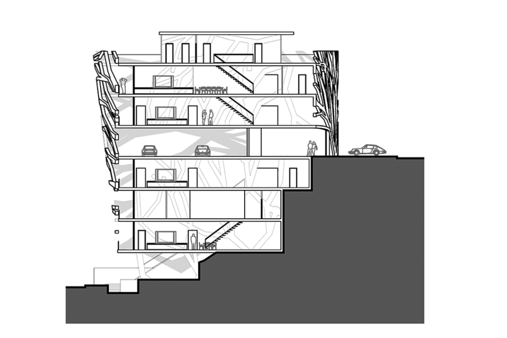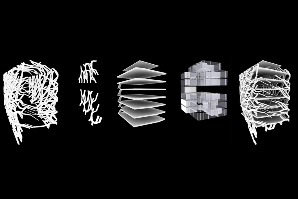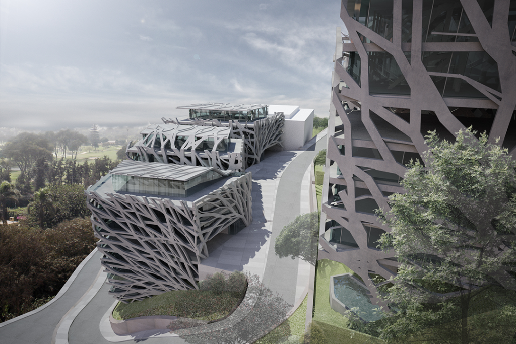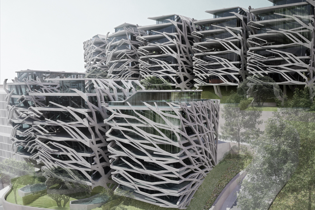 For the Lofts at Green 360 we propose a building that literally grows out of the ground. We use the same logic that trees do to create an exterior structural shell that supports the buildings. The apartments become nests within this structure, giving the owners the feeling ofa safe haven, while creating beautiful views of the surrounding area.
