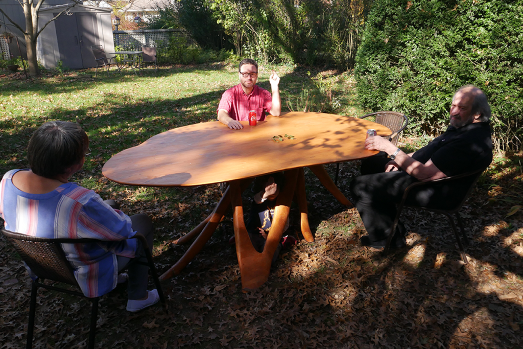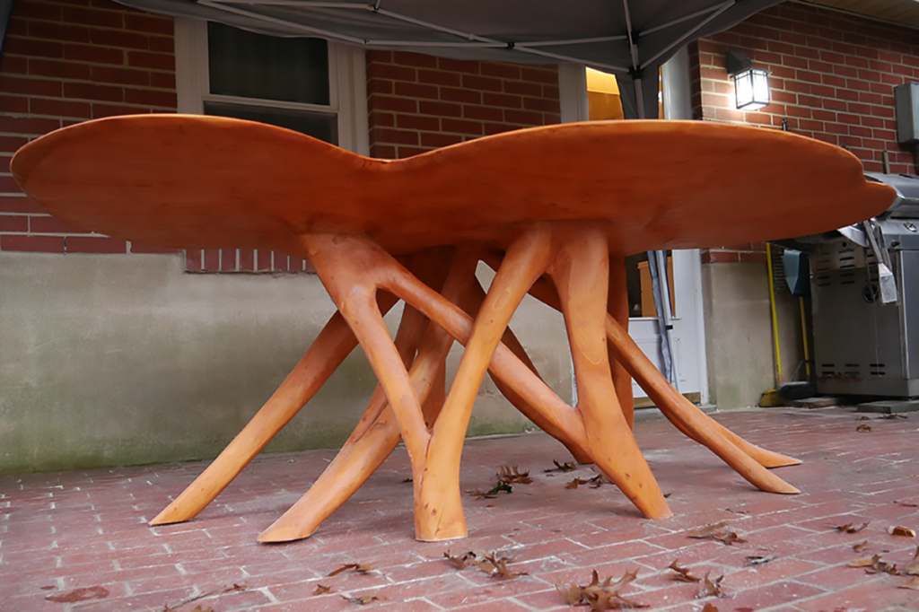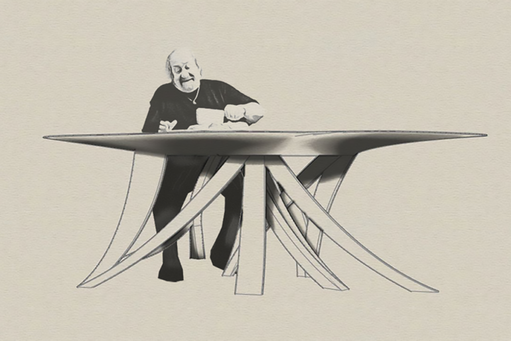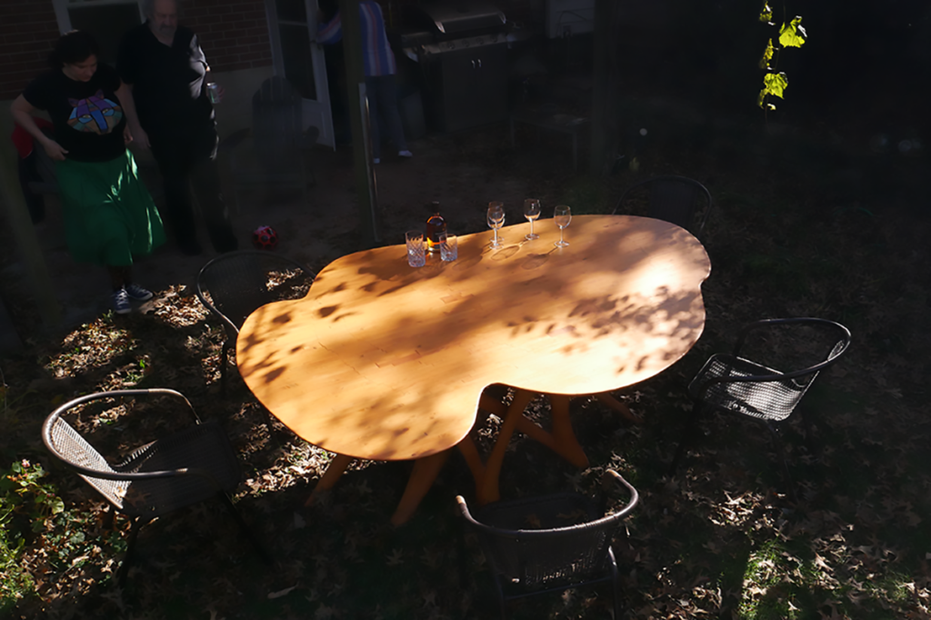 The Diaspora Table is designed as a place for old friends to meet. It is based on a small community of people that have known each other for their whole lives and come together at this table once a year to celebrate and renew that friendship. The process looked at photographs from previous years celebrations and abstracted them into the final form. The top of the table was designed by how people gathered together in groups and the legs were modeled by the conversations that were being had in the photos. These were then run through computational modeling software and fabrication sheets were created to allow for building the table.